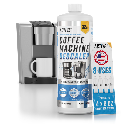 Pour 4oz of ACTIVE Coffee Machine Descaler into the water reservoir then add clean water to reach the maximum fill line.