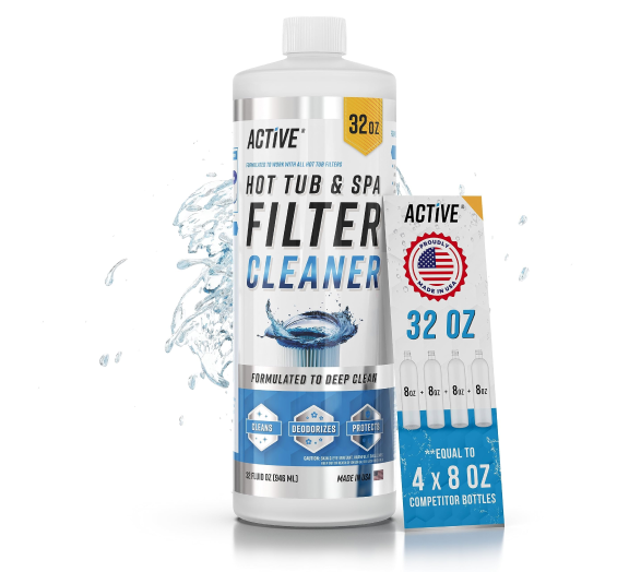 Find a bucket or container large enough to submerge the entire filter. Mix ACTIVE Hot Tub & Spa Filter Cleaner with water using the ratio below.